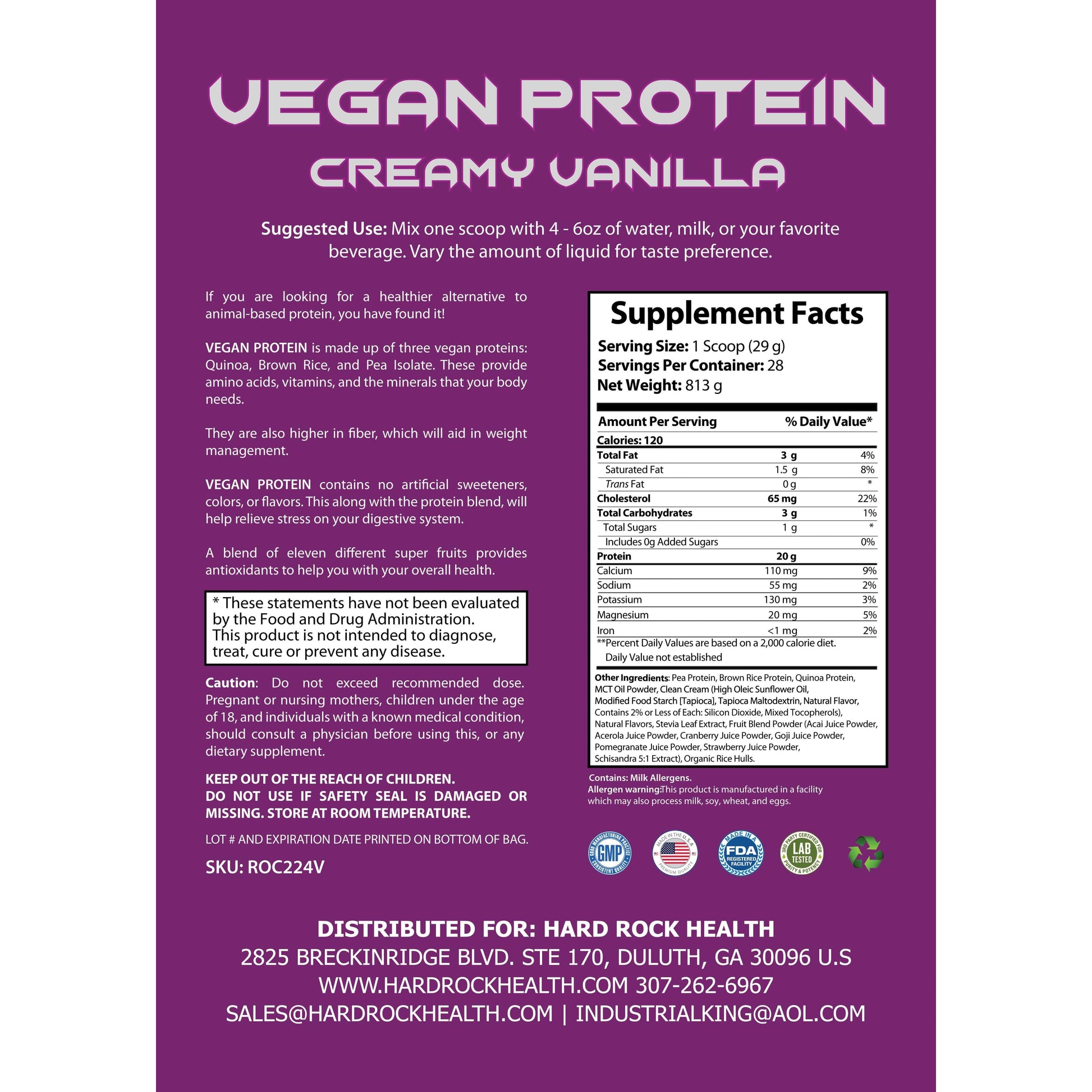 Mix one scoop of Organic Vegan Protein by Hard Rock Health with 4 - 6oz of water, milk, or your favorite beverage. Vary the amount of liquid for taste preference.