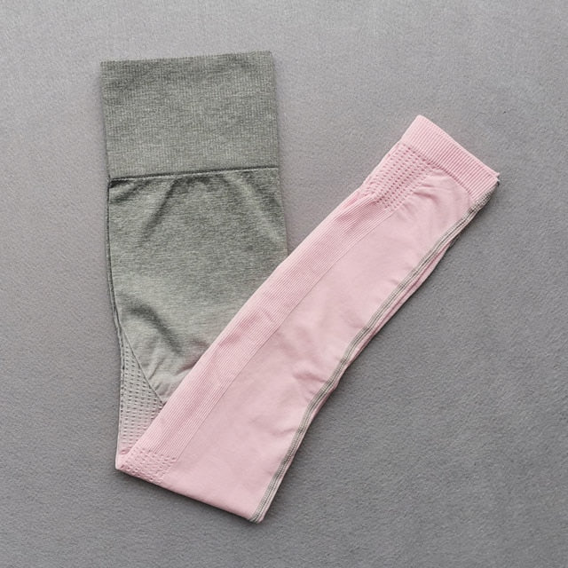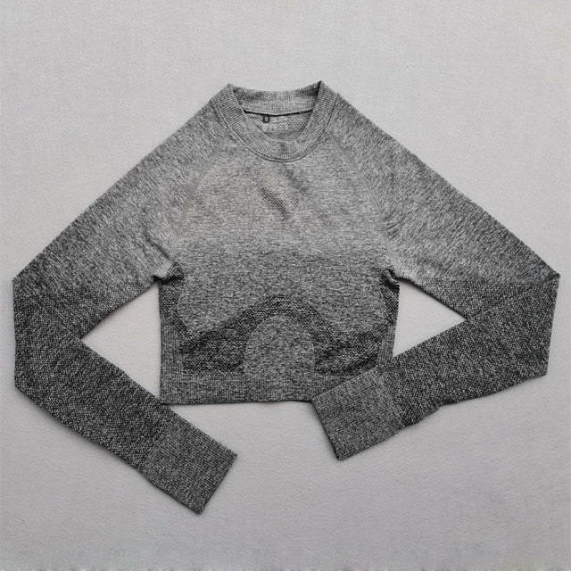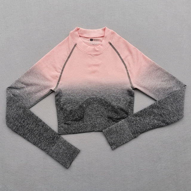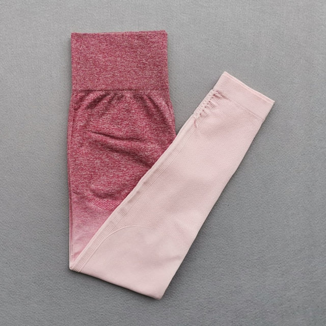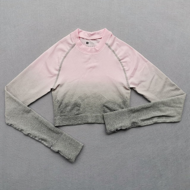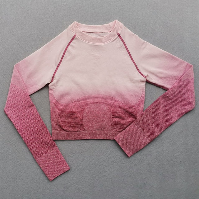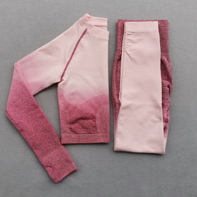 Women Yoga Set Gym Clothing Ombre Seamless Gradient Leggings+Long sleeve Top Workout Sport Suit Women Fitness Set Active Wear